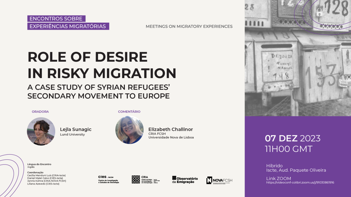 A nova edição dos Encontros sobre experiências migratórias decorre no próximo dia 07 de dezembro pelas 11h no Iscte e, simultaneamente, numa sessão via Zoom.