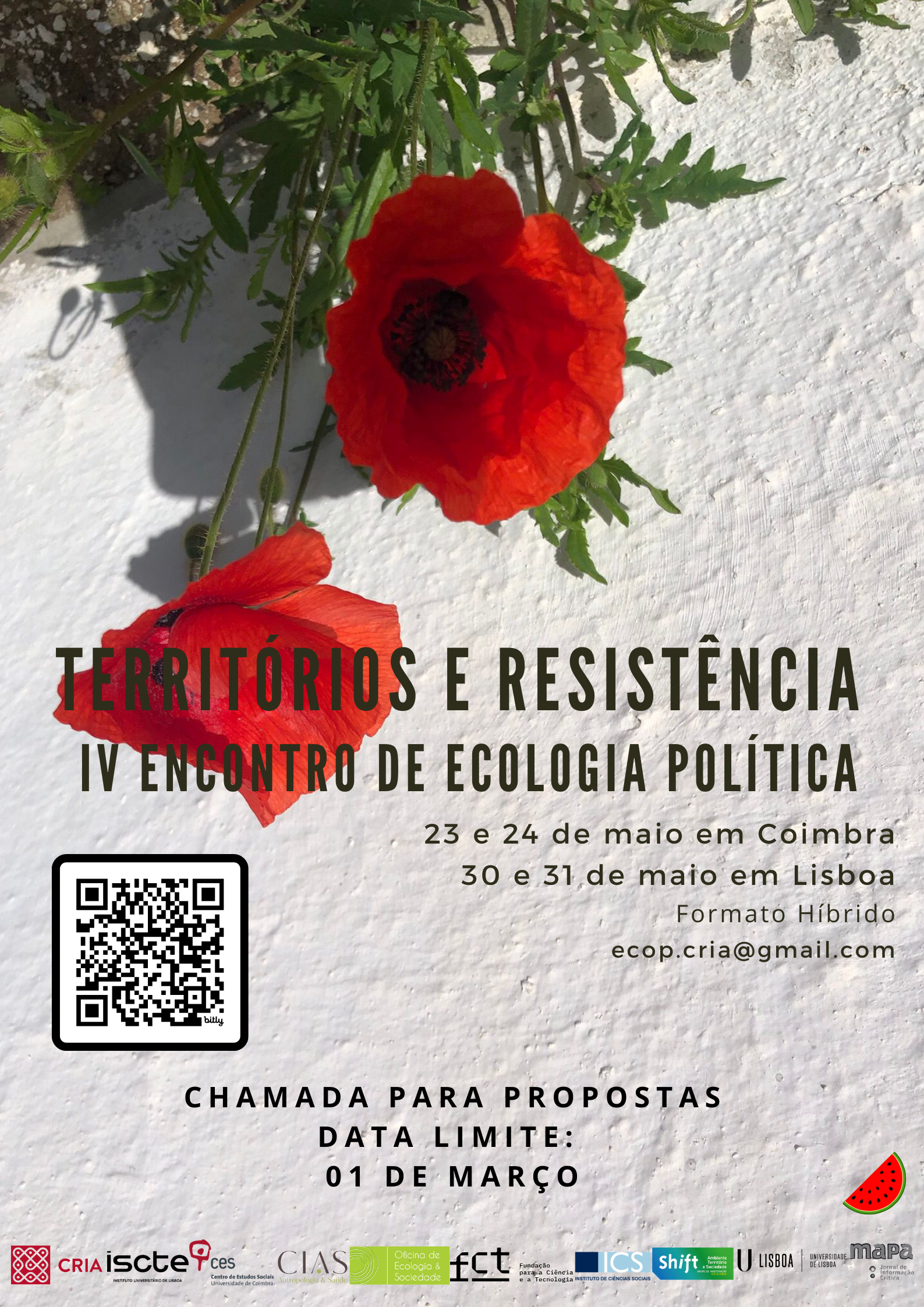 A Rede de Ecologia Política convida à submissão de propostas para o IV Encontro de Ecologia Política, sob o mote “Territórios e Resistências”, que decorrerá nos dias 23 e 24 de maio em Coimbra, e 30 e 31 de maio em Lisboa.