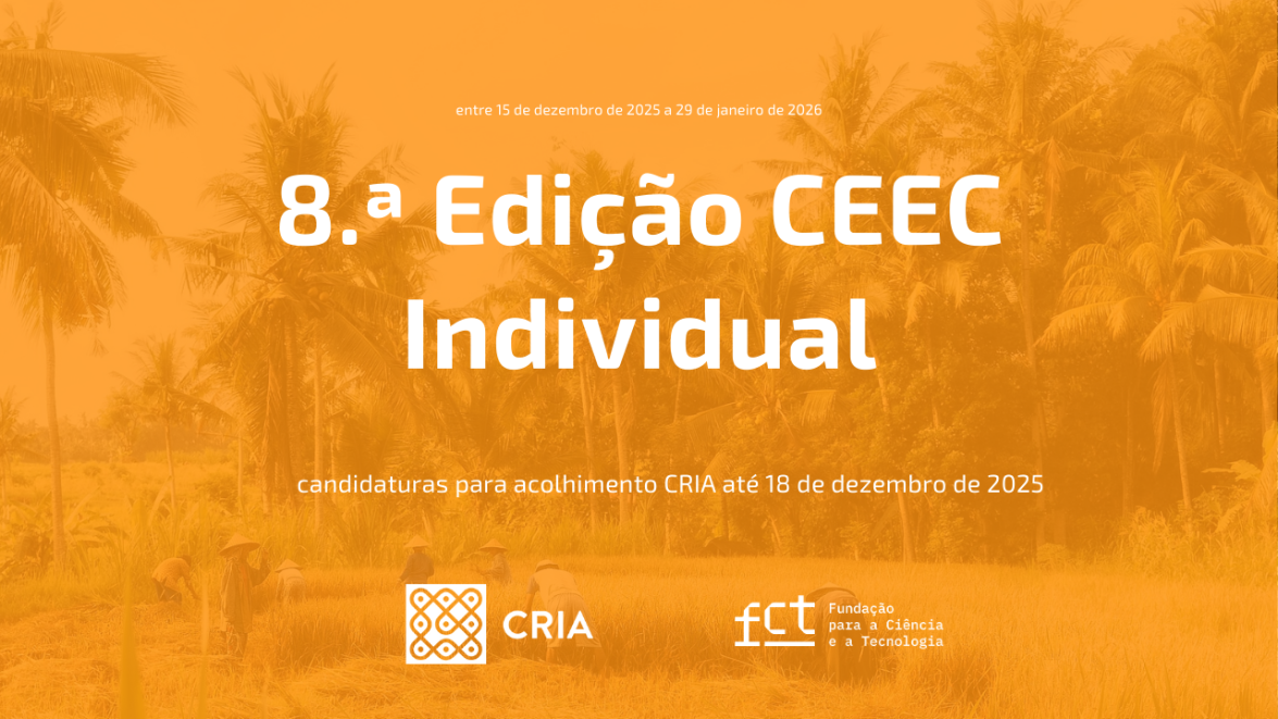 O CRIA informa que o concurso individual para o financiamento de 400 contratos para investigadores doutorados em todas as áreas científicas, no âmbito do programa Estímulo ao Emprego Científico Individual promovido pela Fundação para a Ciência e a Tecnologia (FCT), estará aberto de 15 de dezembro de 2025 a 29 de janeiro de 2026.