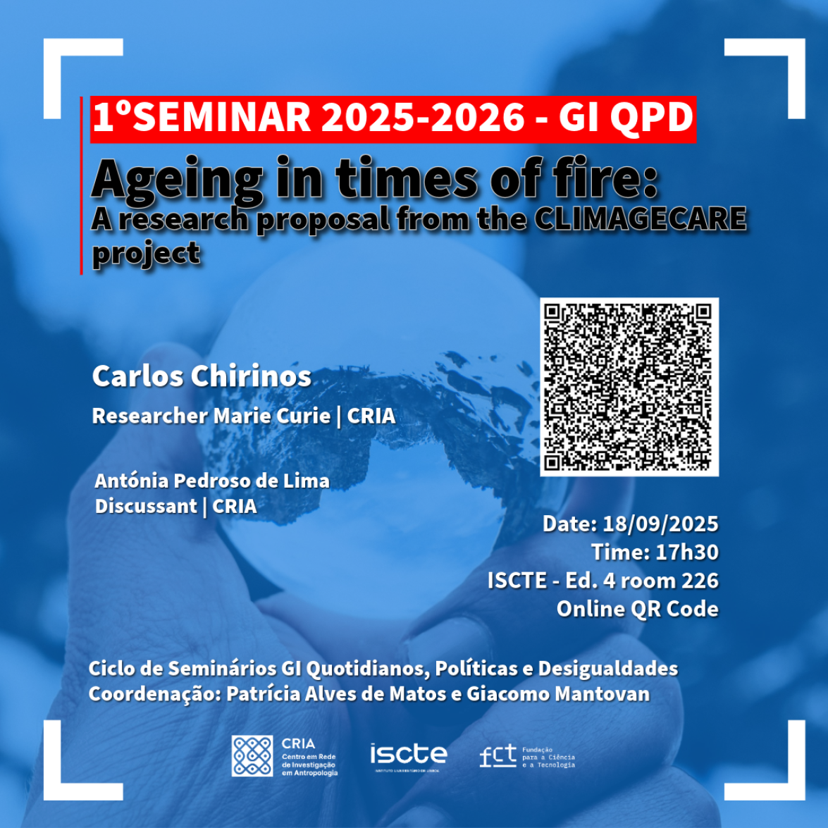 CLIMAGECARE explores ageing social care and older people's care experiences in the context of the climate crisis in villages on the Spain-Portugal border. The border and rural areas of Spain and Portugal share environmental and social conditions that impact the care of older people because depopulation processes and the lack of care policies in social and health programmes are causing a care crisis, and the current climate crisis is increasing the number of forest fires and the temperatures in these border areas, which mainly affect the ageing population. This project adopts a critical and reflexive approach to understand how ageing care is delivered in these rural border areas in a context of climate crisis. It analyses: (1) ageing social care in relation of the primary health system, community and families in the context of climate crisis events such as forest fires and increased temperatures, and (2) the daily care experiences of older people in the context of climate crisis events and their cultural construction of care and self-care based on their relationship with local care actors and the non-human environment. The design of CLIMAGECARE is grounded in empirical and interdisciplinary research, crosscutting the fields of care studies, environmental studies and medical anthropology to understand the dynamics of the relationships between ageing care and the climate crisis. The project will use qualitative research methods and a co-creation approach in two villages on the central Spain-Portugal border to answer the research questions.