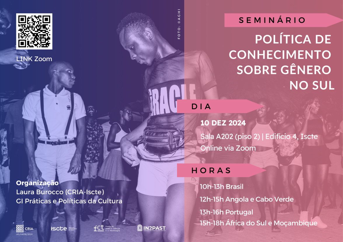 On 10 December 2024, the event ‘Gender Knowledge Policy in the South’ will take place in a hybrid format, with face-to-face sessions in room A202 of Iscte, Lisbon, and online transmission to various regions. The event brings together experts from different parts of the world to discuss gender issues, with times adjusted to the various locations: Brazil (10h-13h), Angola and Cape Verde (12h-15h), Portugal (13h-16h), and South Africa and Mozambique (15h-18h).