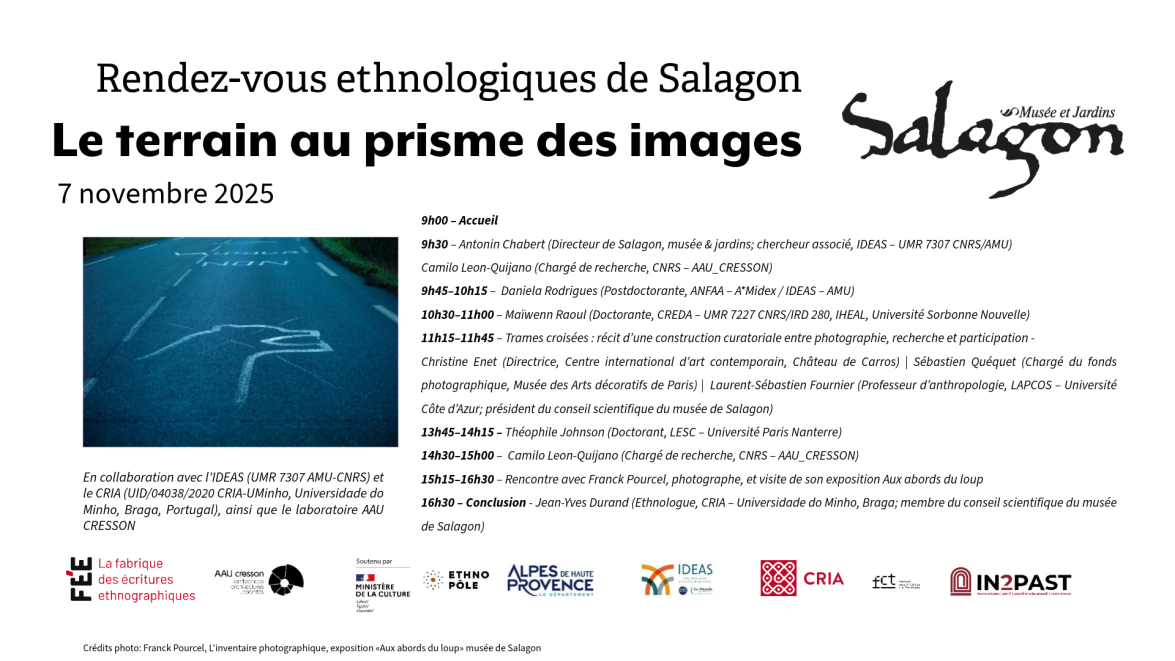 No dia 7 de novembro de 2025, o Musée de Salagon (Mane, Alpes-de-Haute-Provence, França) acolhe uma nova edição dos Rendez-vous ethnologiques de Salagon, este ano dedicada ao tema “Sensibilidades fotográficas: o terreno sob o prisma das imagens”.